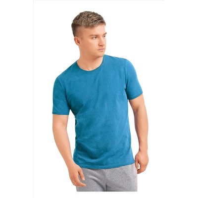 Фуфайка с коротким рукавом среднего объема, круглым вырезом горловины, которая оформлена обтачкой из рибаны.