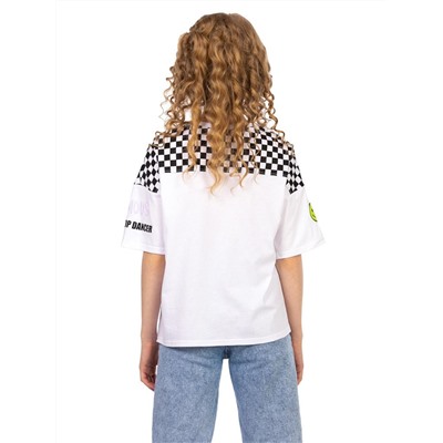 Футболка OVERSIZE со спущенным рукавом. Вырез горловины округлый, неглубокий. Декорировано изделие принтом. Тип ткани-Кулирная гладь (супрем).