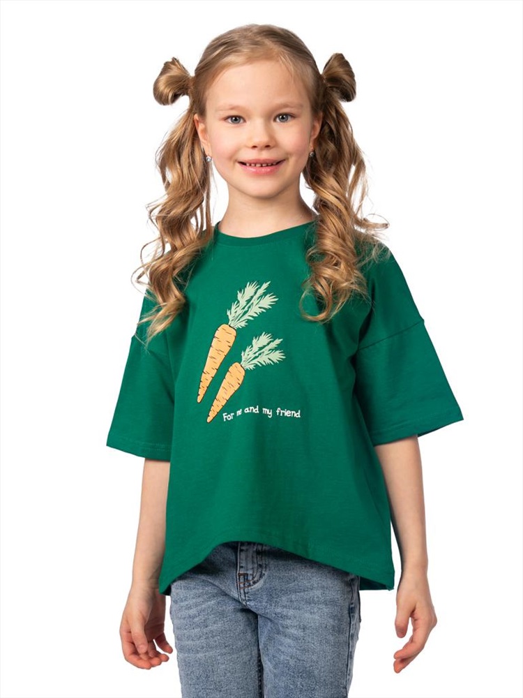 Изделие OVERSIZE. Вырез горловины округлый, неглубокий. Рукав спущен. Декорирована футболка принтом. Тип ткани: Кулирная гладь (супрем).