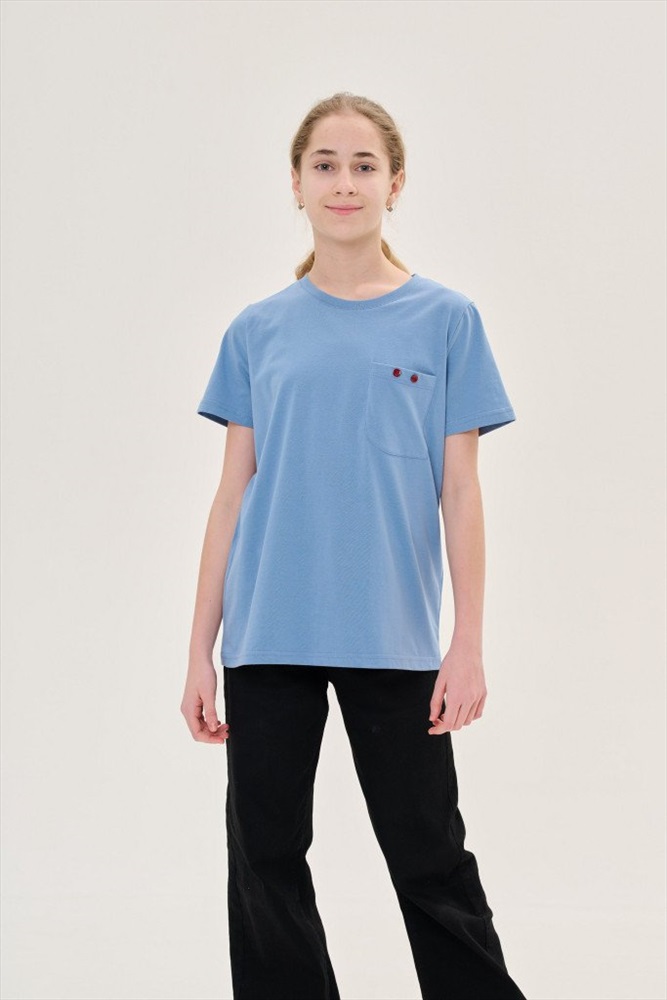 Состав: 100% хб Рост модели на фото, см: 158 Силуэт: прямой Вырез горловины: круглый Тип рукава: втачной Карманы: накладной Артикул: Д 0128-07
