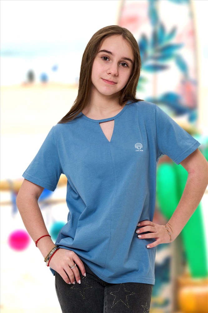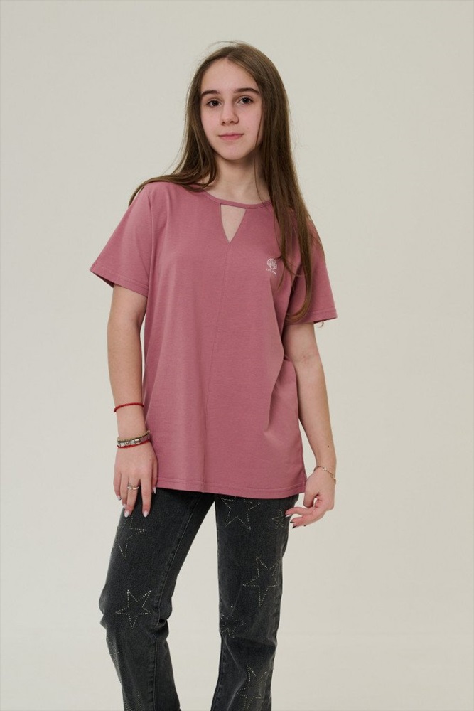Состав: 100% хб Рост модели на фото, см: 158 Силуэт: прямой Вырез горловины: круглый Тип рукава: втачной Артикул: Д 0145-14