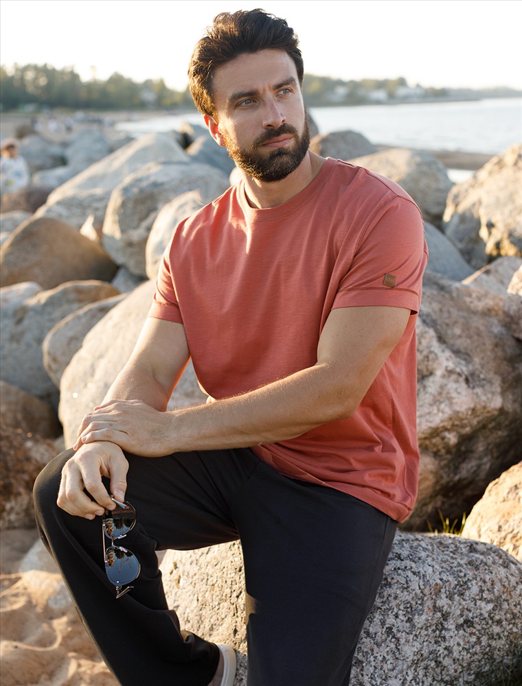 Плотность: 140 Г/м2 Футболка выполнена из фактурного полотна из 100% хлопка. Базовая однотонная модель, без труда впишется в любой гардероб. Ткань имеет характерный рисунок черточки за счет сочетания разных волокон хлопка 140-150 г. Хорошо держит форму и поддерживает комфортный микроклимат в течении дня. На рукаве нашивка из эко-кожи с логотипом бренда.