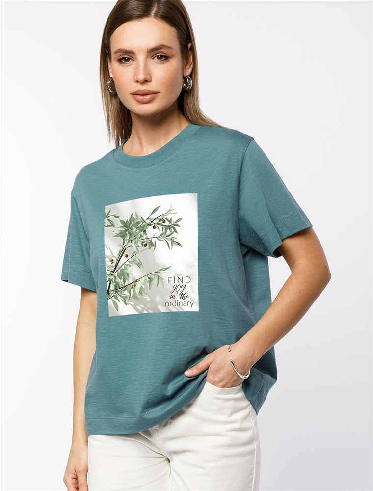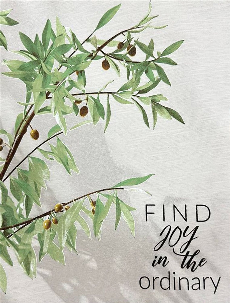 Плотность: 140 Г/м2 Параметры модели на первом фото: Рост 170, бюст 89, талия 63, бедра 92 Перевод принта: Find joy in the ordinary - находи радость в мелочах. Футболка выполнена из фактурного полотна из 100% хлопка. Модель с лаконичным авторским принтом легко впишется в любой весенне-летний гардероб. Ткань имеет характерный рисунок черточки за счет сочетания разных волокон хлопка 140-150 г. Хорошо держит форму и поддерживает комфортный микроклимат в течении дня. Комментарии к товару