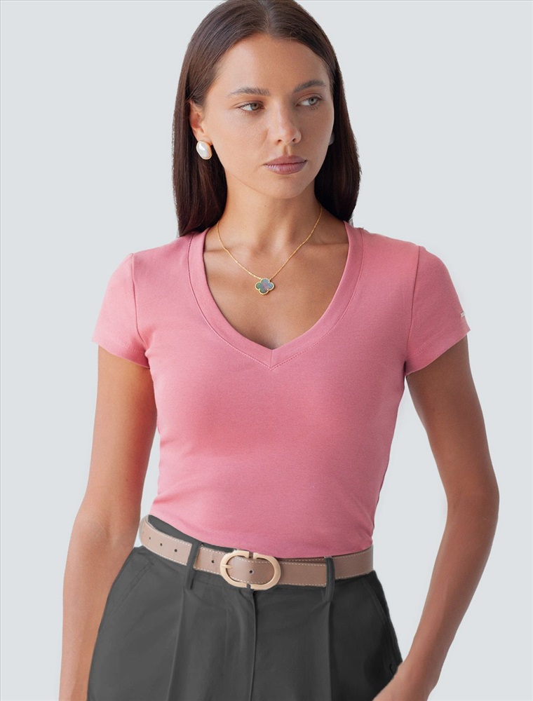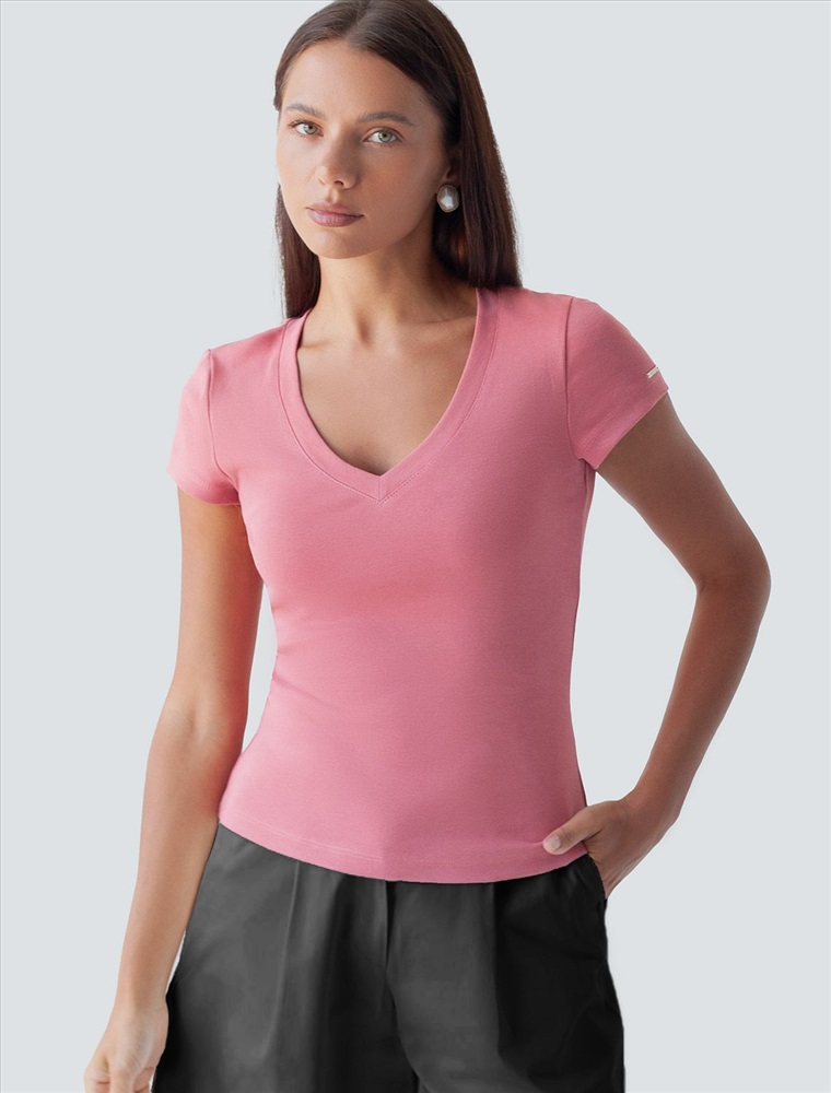 Плотность: 210 Г/м2 Облегающая футболка с V-образным вырезом оттенка "туманная роза" создаст утонченный образ. Идеальная базовая модель для вашего гардероба! Глубокий V-образный вырез подчеркивает линию шеи и зрительно удлиняет силуэт. Футболка выполнена из хлопка с добавлением эластана, которая мягко облегает контуры тела, подчеркивая достоинства фигуры. Универсальный вариант для создания стильных повседневных образов. Комментарии к товару