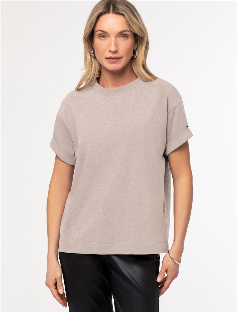 Плотность: 170 Г/м2 Базовая однотонная футболка из премиального хлопка. Горловина выполнена из рибаны в тон изделия, Рукава с подворотами и золотистым логотипом бренда из металла. Добавление эластана в состав изделия способствует формоустойчивости. Самое высокое качество хлопковых волокон обеспечивает комфорт в любое время года. Идеально держит форму и сохраняет внешний вид в течение долговременного использования. Универсальная базовая вещь для ваших стилистических решений. Комментарии к товару