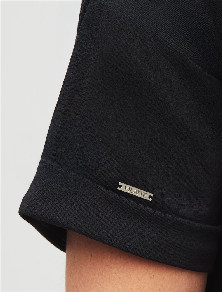 Базовая однотонная футболка из премиального хлопка. Горловина выполнена из рибаны в тон изделия, Рукава с подворотами и золотистым логотипом бренда из металла. Добавление эластана в состав изделия способствует формоустойчивости. Самое высокое качество хлопковых волокон обеспечивает комфорт в любое время года. Идеально держит форму и сохраняет внешний вид в течение долговременного использования. Универсальная базовая вещь для ваших стилистических решений.
