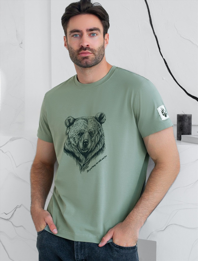 Футболка выполнена из премиального хлопка с эластаном. Авторский принт нанесен фактурными красками с устойчивым покрытием. Изделие комфортно сидит по фигуре, не сковывая движений. За счет среднего объема, хорошо подойдет как первый слой под пиджак, кардиган или бомбер. На рукаве нашивка из эко-кожи с логотипом бренда.