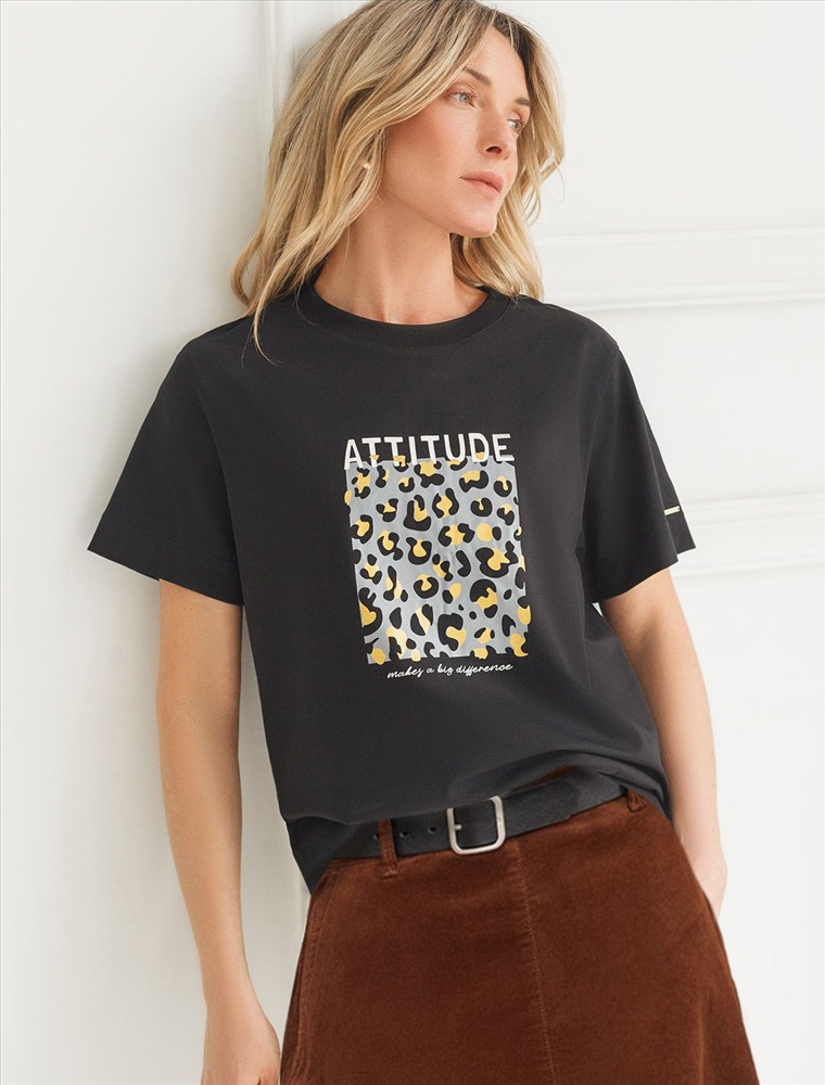 Плотность: 170 Г/м2 Параметры модели на первом фото: Рост 172, бюст 88, талия 64, бедра 88 Перевод принта: Attitude makes a big difference - от отношения зависит многое. Футболка выполнена из премиального хлопка. Авторский принт нанесен фактурными красками с устойчивым покрытием. Наличие эластана в составе гарантирует комфорт и формоустойчивость. Изделие дополнено фирменным металлическим логотипом бренда. Комментарии к товару