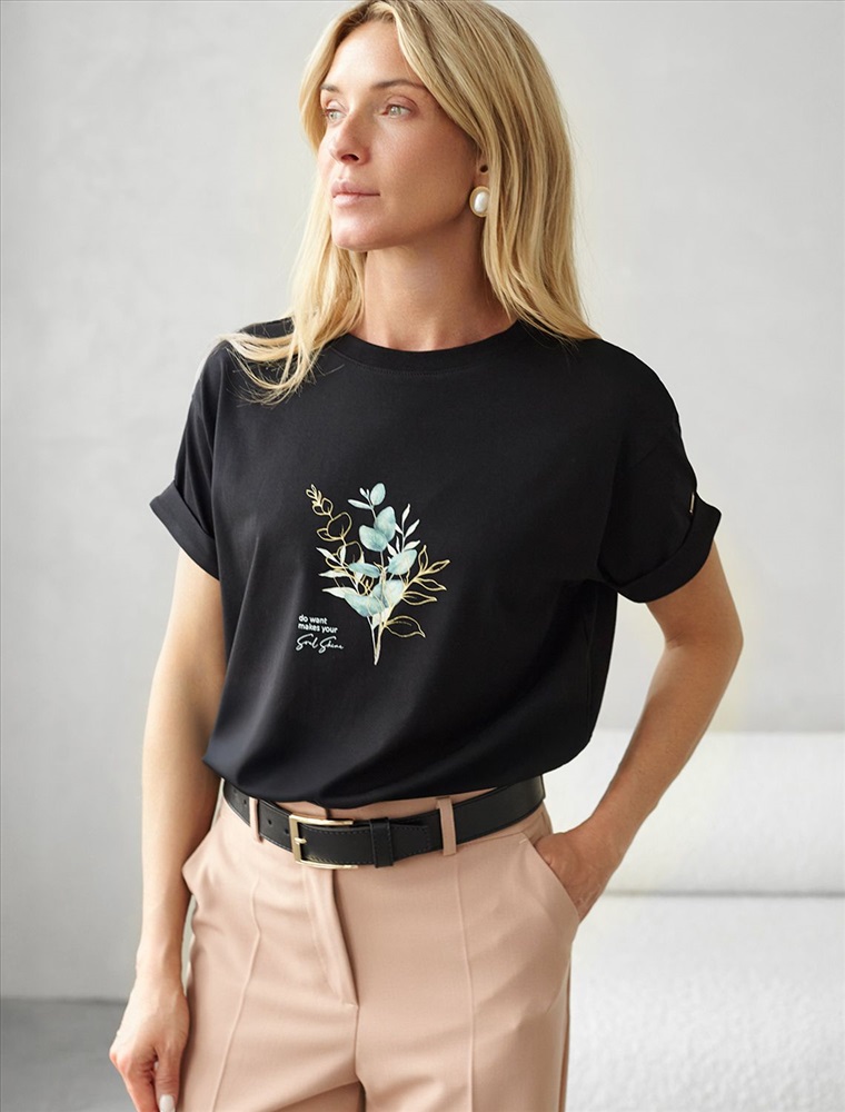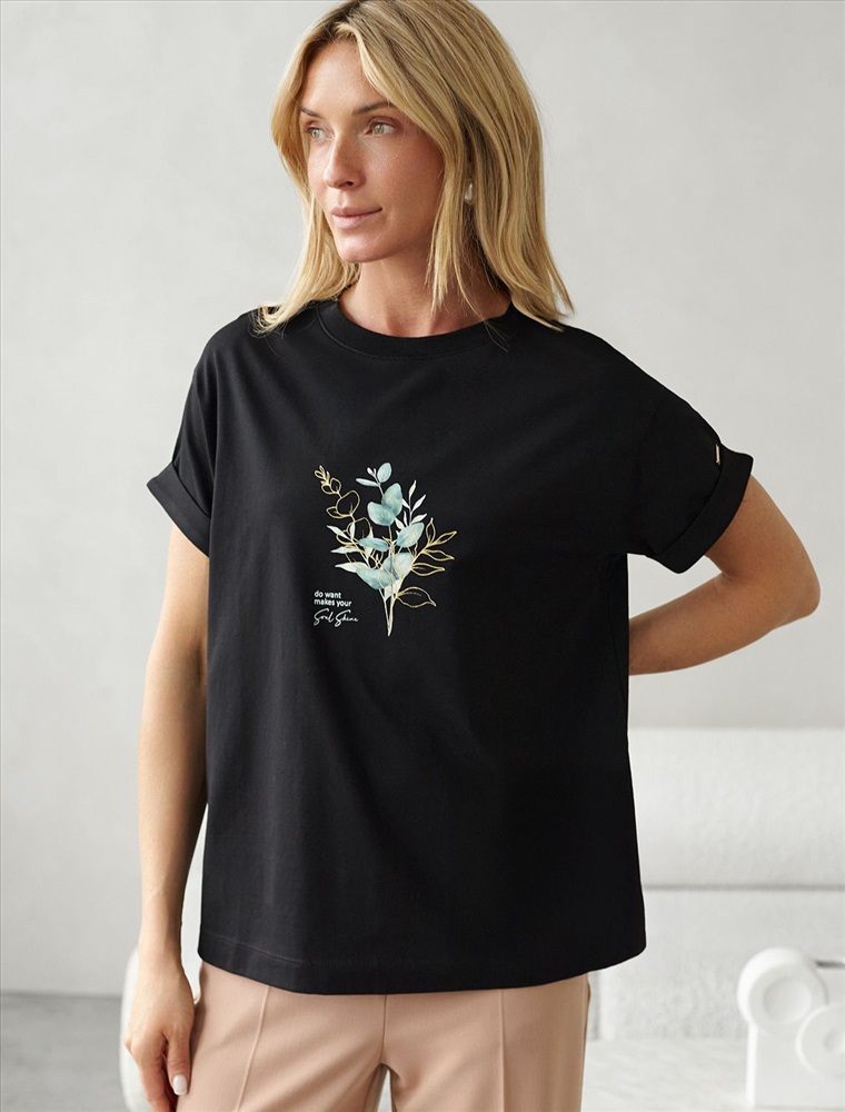 Плотность: 170 Г/м2 Перевод принта: do what makes your soul shine — делай то, что заставляет тебя сиять Футболка из премиального хлопка, высокое качество хлопковых волокон обеспечивает комфорт в любое время года. Горловина выполнена из рибаны в тон изделия, Рукава с подворотами и золотистым логотипом бренда. Авторский принт нанесен фактурными красками и фольгой с устойчивым покрытием. За счет эластана в составе идеально держит форму и сохраняет внешний вид в течение долговременного использования. Универсальная вещь для ваших стилистических решений. Комментарии к товару