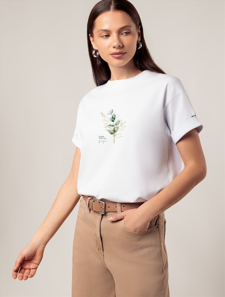 Плотность: 170 Г/м2 Перевод принта: do what makes your soul shine — делай то, что заставляет тебя сиять. Футболка из премиального хлопка, высокое качество хлопковых волокон обеспечивает комфорт в любое время года. Горловина выполнена из рибаны в тон изделия, Рукава с подворотами и золотистым логотипом бренда. Авторский принт нанесен фактурными красками и фольгой с устойчивым покрытием. За счет эластана в составе идеально держит форму и сохраняет внешний вид в течение долговременного использования. Универсальная вещь для ваших стилистических решений. Комментарии к товару