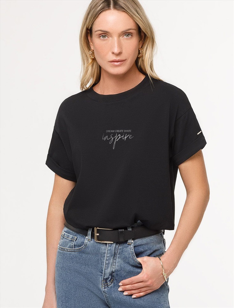 Плотность: 170 Г/м2 Параметры модели на первом фото: Рост 172, бюст 88, талия 64, бедра 88 Размер товара на первом фото: 42 Перевод принта: Футболка из премиального хлопка, высокое качество хлопковых волокон обеспечивает комфорт в любое время года. Горловина выполнена из рибаны в тон изделия, Рукава с подворотами и золотистым логотипом бренда. Авторский принт нанесен фактурными красками с устойчивым покрытием. За счет эластана в составе идеально держит форму и сохраняет внешний вид в течение долговременного использования. Универсальная вещь для ваших стилистических решений. Комментарии к товару