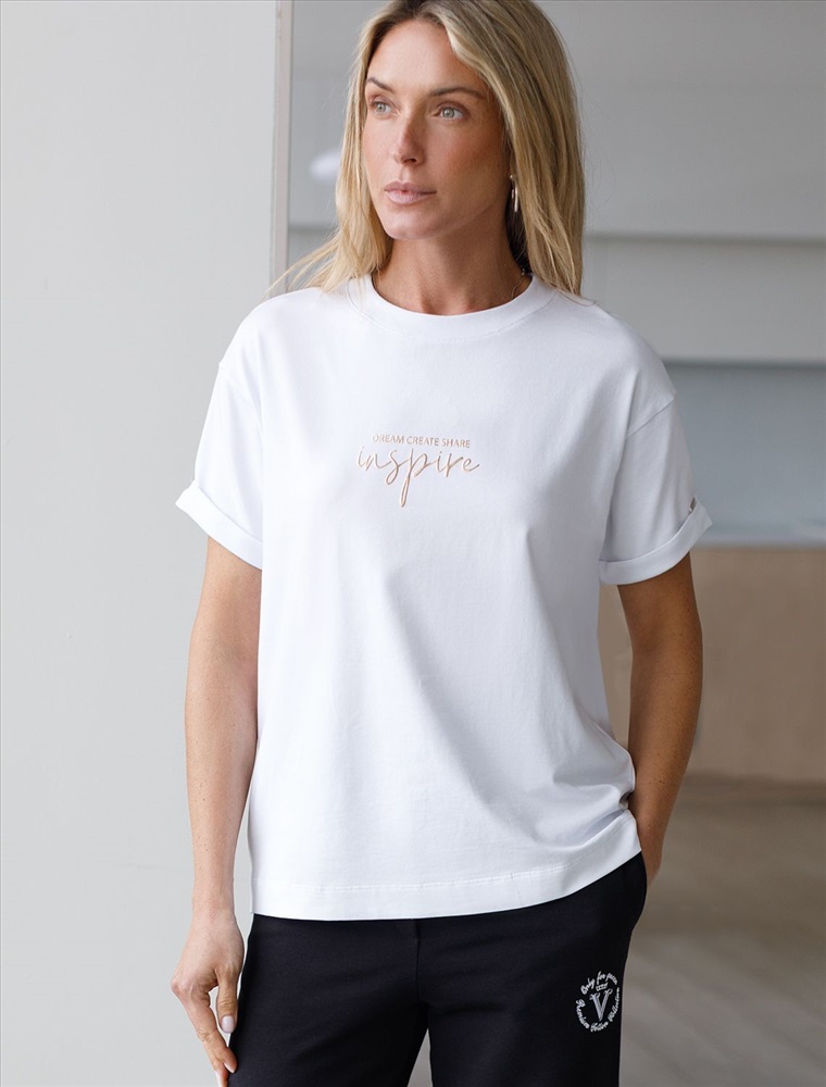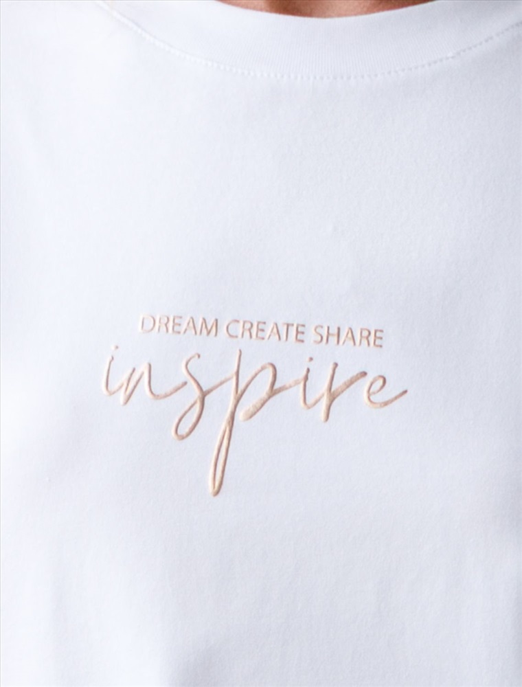 Перевод принта: Dream, create, share, inspire — мечтай, создавай, делись, вдохновляй.