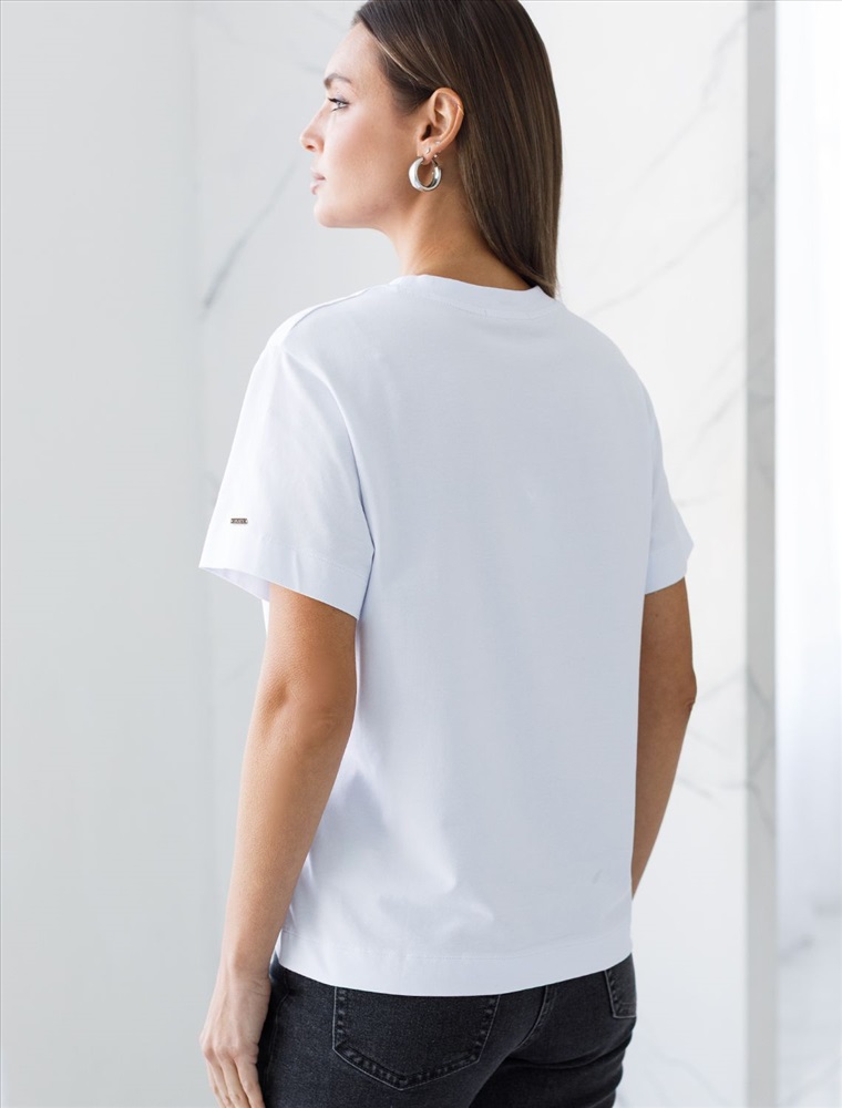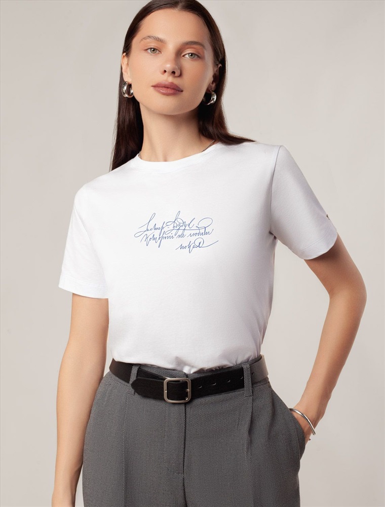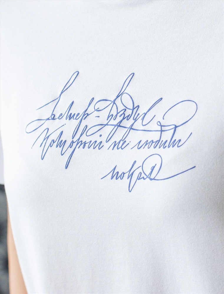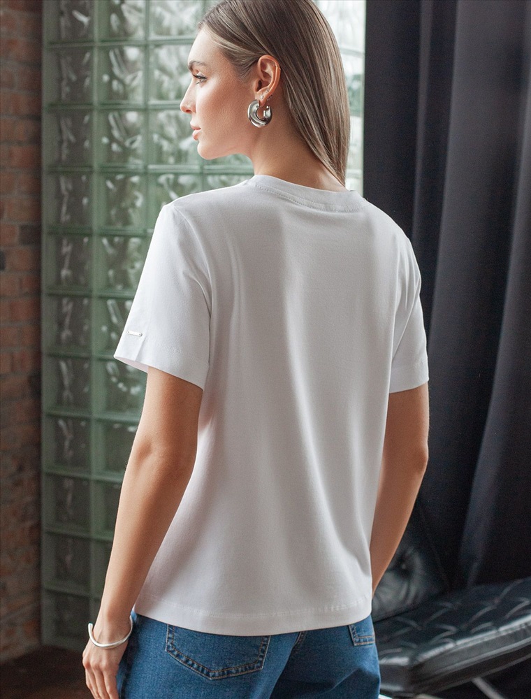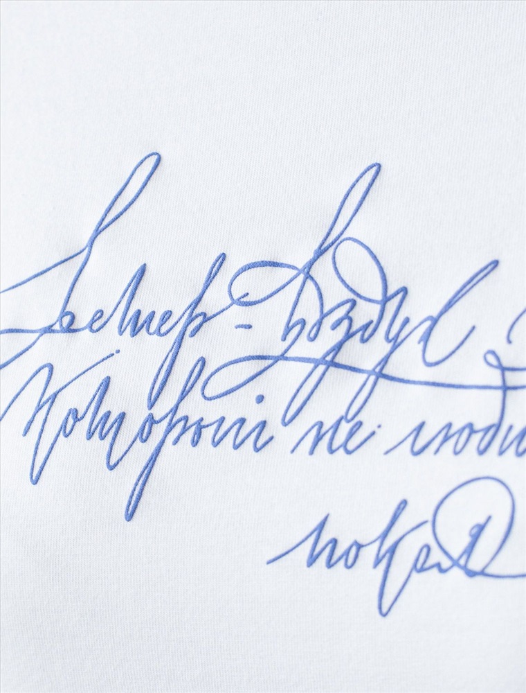 Плотность: 170 Г/м2 Футболка выполнена из премиального хлопка. Авторский принт нанесен фактурными красками с устойчивым покрытием. Наличие эластана в составе гарантирует комфорт и формоустойчивость. Изделие дополнено фирменным металлическим логотипом бренда. Комментарии к товару