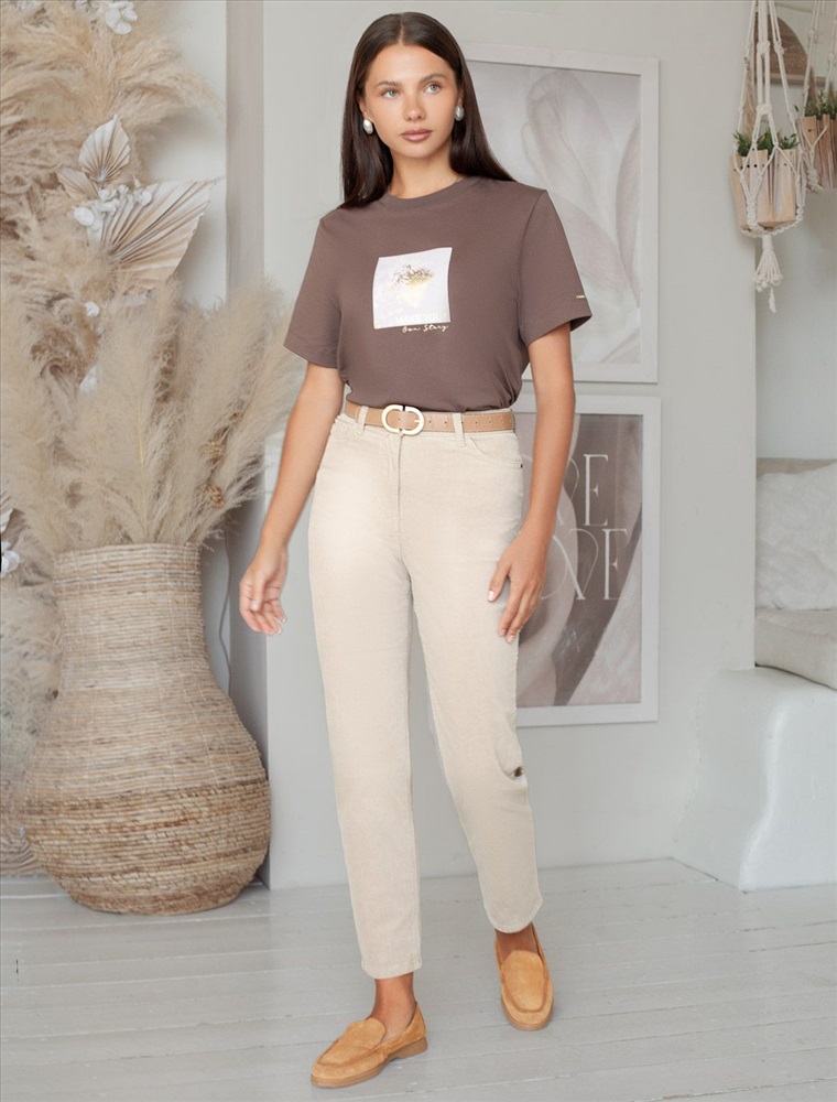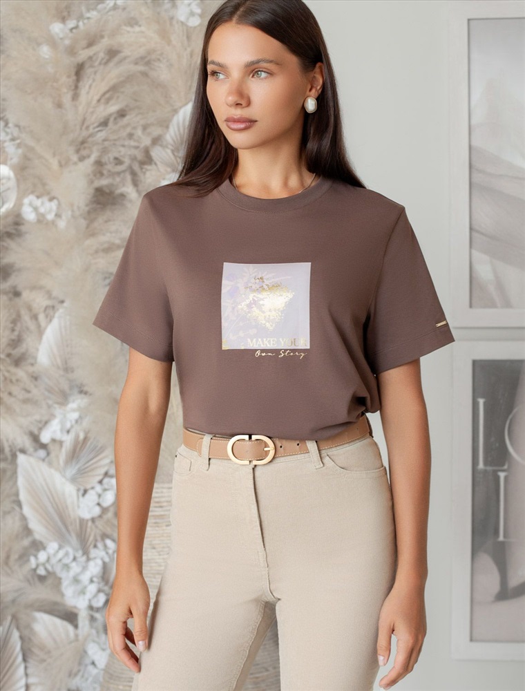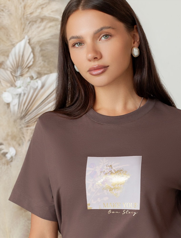 Плотность: 170 Г/м2 Перевод принта: Make your own story — будь автором своей истории. Футболка выполнена из премиального хлопка. Авторский принт нанесен фактурными красками и фольгой с устойчивым покрытием. Наличие эластана в составе гарантирует комфорт и формоустойчивость. Принт станет дополнением не только в повседневных сочетаниях, но и отлично подойдет к вечерним образам. Изделие дополнено фирменным металлическим логотипом бренда. Комментарии к товару