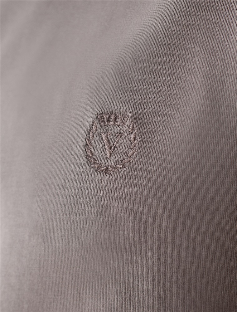 Однотонная футболка выполнена в минималистичном стиле, дополнена аккуратной вышивкой на груди в виде буквы V в тон изделия, а так нашивкой на рукаве из эко-кожи с логотипом VILATTE. Подходит как классический вариант для работы в офисе под пиджак, так и для повседневной носки или занятий спортом. Мягкая ткань приятна к телу, не вызывает дискомфорта и идеально подходит для дома или летних прогулок благодаря короткому рукаву.