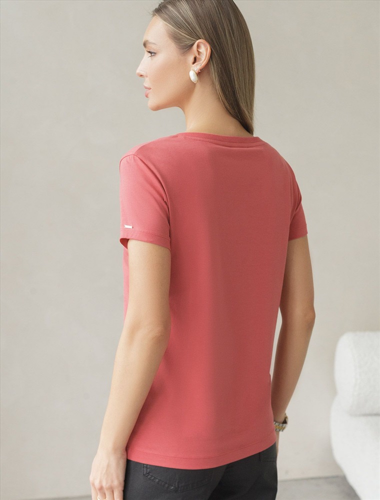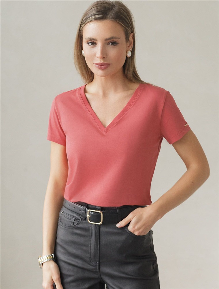 Плотность: 170 Г/м2 Размер товара на первом фото: 42 Однотонная футболка с V-образным вырезом выполнена из премиального хлопка. Добавление эластана в состав изделия способствует формоустойчивости. Самое высокое качество длинноволокнистых хлопковых волокон обеспечивает комфорт в любое время года.Универсальная базовая будет уместна не только в повседневном образе с денимом, но и в офисе с нестрогим дресс-кодом, в паре с брюками и жакетом. Комментарии к товару