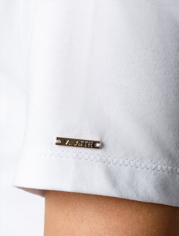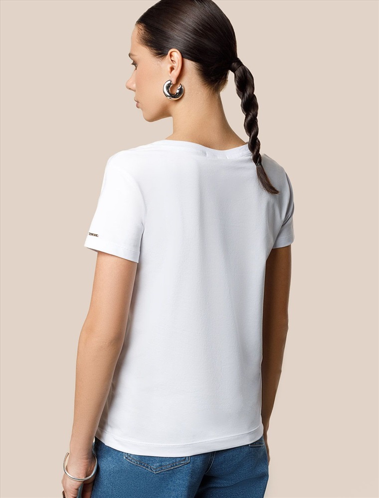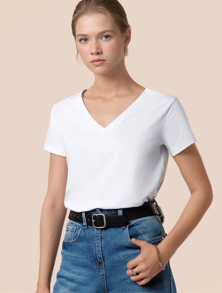 Однотонная футболка с V-образным вырезом выполнена из премиального хлопка. Добавление эластана в состав изделия способствует формоустойчивости. Самое высокое качество длинноволокнистых хлопковых волокон обеспечивает комфорт в любое время года.Универсальная базовая будет уместна не только в повседневном образе с денимом, но и в офисе с нестрогим дресс-кодом, в паре с брюками и жакетом.
