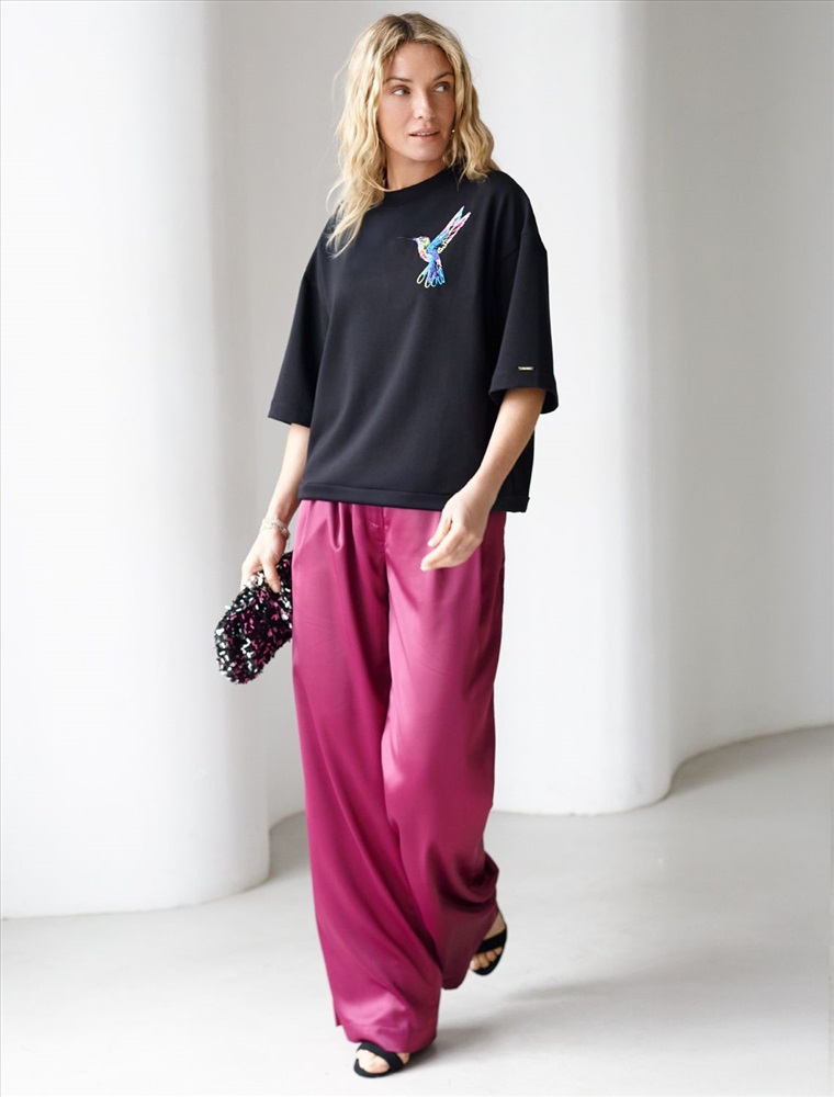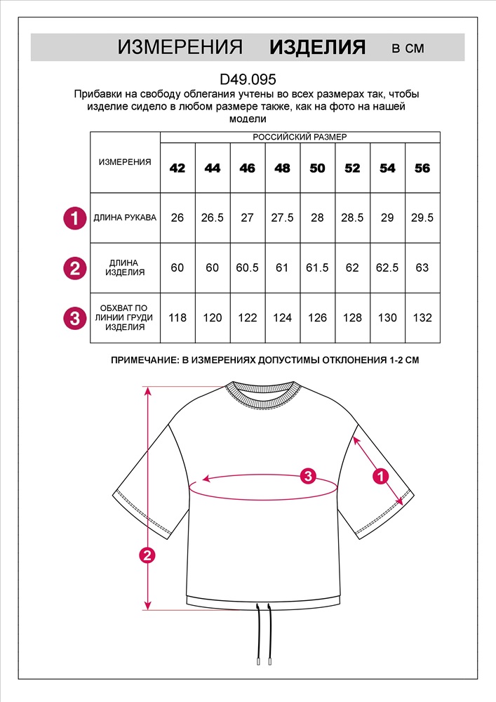 Параметры модели на первом фото: Рост 170, бюст 89, талия 63, бедра 92 Футболка выполнена из эластичного футера двухнитки, дополнена акцентной вышивкой на груди. Модель свободного кроя, по низу изделия дополнена хлопковым шнуром с металлической фурнитурой. Изделие сочетается в костюме с шортами D48.010, брюками D44.135 и D44.137 Комментарии к товару