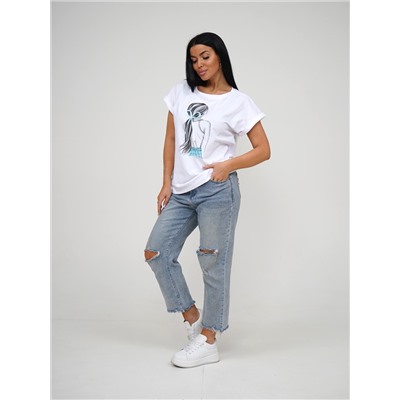 Артикул: НФ-00152435 Плотность материала: 140 г/м2 Бренд: Текс-плюс Состав материала: 95% Хлопок / 5% Лайкра Вид изделия: Футболки женские Материал: Кулирка / Лайкра Декоративные элементы: Принт Для: Женщин Цвет: Белый Код товара: НФ-00152435 Молодежная футболка свободной силуэтной форvы с цельнокроеным рукавом, О-образной горловиной, длиной до уровня бедер с печатным рисунком на полочке. Комментарии к товару