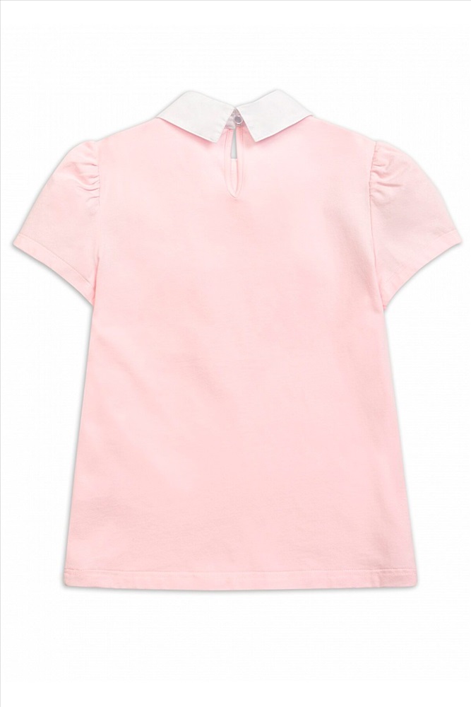 ID товара: 308686 Состав: Хлопок 97%, Эластан 3%; Вставка- Хлопок 60%, Полиэстер 40% Сезон: Демисезон Длина: Средняя Фасон: Прямой Рукав: Короткий Вид застежки: Пуговицы Вырез горловины: Отложной воротник Рисунок: нет Тип карманов: Без карманов Декоративные элементы: Нашивка Основная ткань: Хлопок Стиль: классический Страна бренда: Россия Страна производства: Китай Футболка для девочек полуприлегающего силуэта с воротником из швейной ткани на отрезной стойке, имитирующим воротник рубашки. Перед украшает жабо из швейной ткани и кружева, собранное под вертикальную планку. Декор в виде брошки с жемчужиной и стразами. По спинке застежка на одну пуговицу. Рукав с небольшой сборкой по окату. Комментарии к товару
