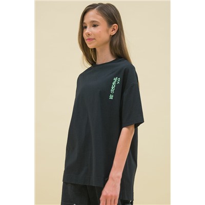 ID товара: 917554 Состав: 100% Хлопок Сезон: Демисезон Длина: Средняя Фасон: Свободный крой Рукав: короткие Вырез горловины: Округлый Основная ткань: Хлопок Стиль: Повседневный Страна бренда: Россия Страна производства: Россия Детская футболка для девочки. Комфортная майка свободного объёма не будет стеснять движений ребёнка. Джемпер оверсайз со спущенным плечом — один из актуальных трендов сезона. Небольшой вырез горловины отделан эластичной рибаной (ткань в рубчик) — она отлично держит форму, при этом ребёнку удобно надевать и снимать футболку. Спинка немного длиннее переда, боковые швы смещены вперёд, по бокам небольшие разрезы — модные, трендовые детали. За изделием легко ухаживать. Футболка с прикольным принтом в актуальном стиле граффити по переду и спинке. Надписи переводятся: «будь оригинальным», «вдохновение, настроение, креативность, стиль», «искусство», «больше никакого скучного искусства»,«супер, супер, супер». Принты мягкие и стойкие, отлично переносят частые стирки. В составе ткани 100% хлопка — майка воздухопроницаемая и приятная на ощупь. Оверсайз-футболка для девочки выполнена в универсальном чёрном цвете. Размерная линейка: 7 (122): 8 (128): 9 (134): 10 (140): 11 (146). Чёрная оверсайз-футболка подходит как для девочек младшего школьного возраста, так и для девочек-подростков. Её можно носить летом, осенью и весной (демисезон), зимой в качестве среднего слоя одежды. Подходит для спорта, прогулок, отдыха, а также в качестве домашней одежды. Легко комбинируется с различными брюками, легинсами, юбками и шортами. Футболка с надписями — замечательный подарок дочери, внучке или сестре на любой праздник или просто в качестве знака внимания и заботы. Комментарии к товару