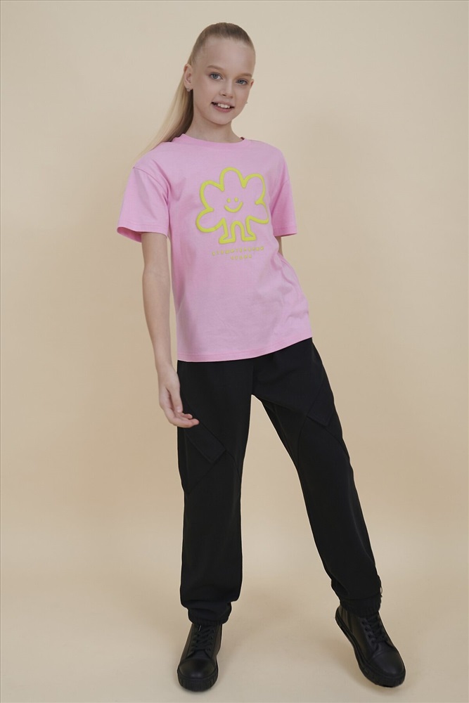 Футболка для девочки небольшого объема. Вырез горловины обработан эластичной рибаной (ткань в рубчик) — она отлично держит форму, при этом ребёнку удобно надевать и снимать футболку. За изделием легко ухаживать. Футболка с прикольным принтом по переду выполнена из высококачественного хлопка — джемпер приятен на ощупь и великолепно пропускает воздух, что позволяет коже ребёнка свободно дышать. Принт мягкий и прочный — не боится частых стирок. Футболка умеренного объема идеальна для маленьких девочек дошкольного и младшего школьного возраста, а также девочек-подростков. Модель подходит для детского сада, спорта, прогулок, отдыха, а также в качестве домашней одежды. Футболка детская подходит для носки летом, осенью и весной (демисезон), зимой в качестве среднего слоя одежды. Её просто комбинировать с различными брюками, юбками, легинсами и шортами. Футболка детская — замечательный подарок дочери, внучке или сестре на любой праздник. Размерный ряд: 1 (86): 2 (92): 3 (98): 4 (104): 5 (110): 6 (116): 7 (122): 8 (128): 9 (134): 10 (140): 11 (146). Выбирайте нужный размер по таблице размеров на фото. Цвет товара на экране вашего устройства может отличаться от цвета изделия вживую.