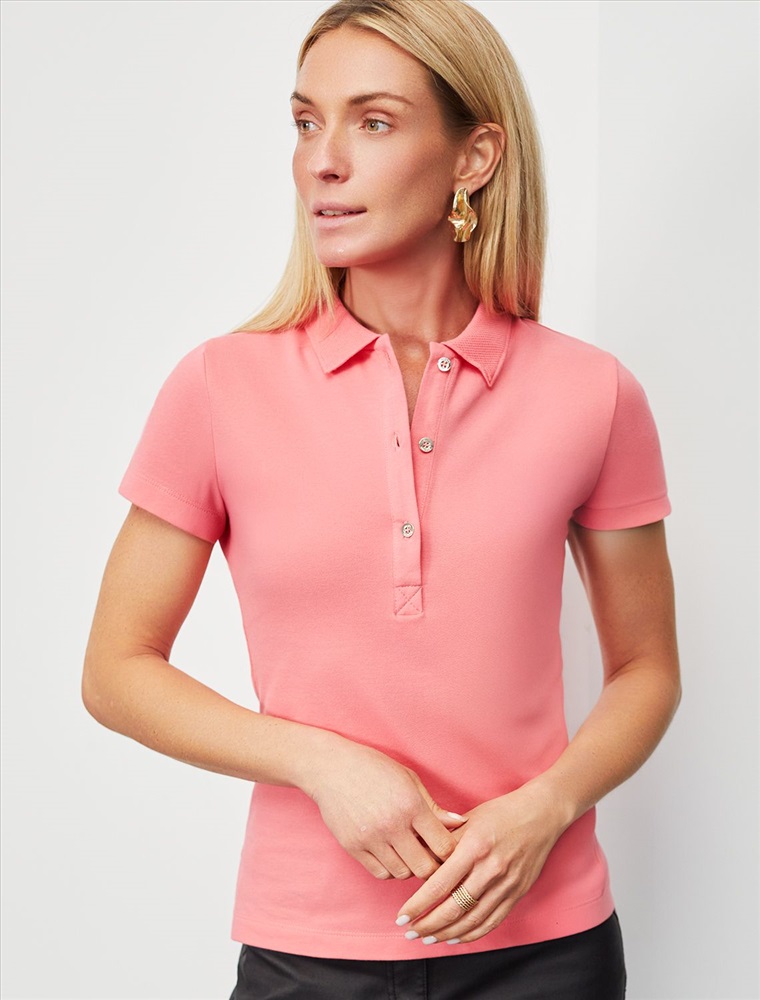 Плотность: 170 Г/м2 Футболка-поло полуприлегающего силуэта. Классическая модель из хлопка с эластаном с отложным вязаным воротником. Идеально впишется в повседневный гардероб. Застежка на пуговицы на планке. Комментарии к товару