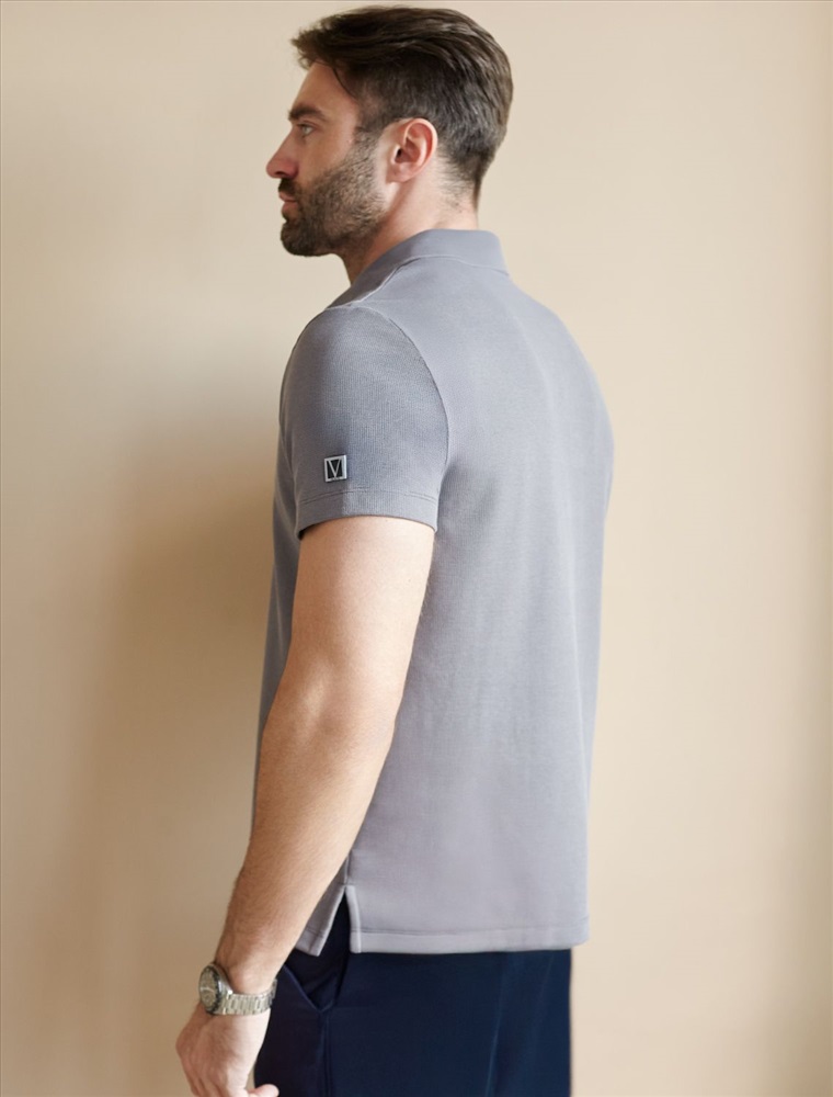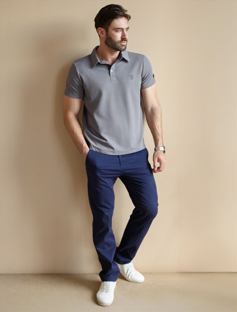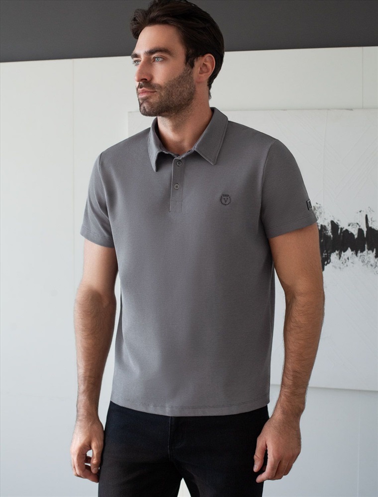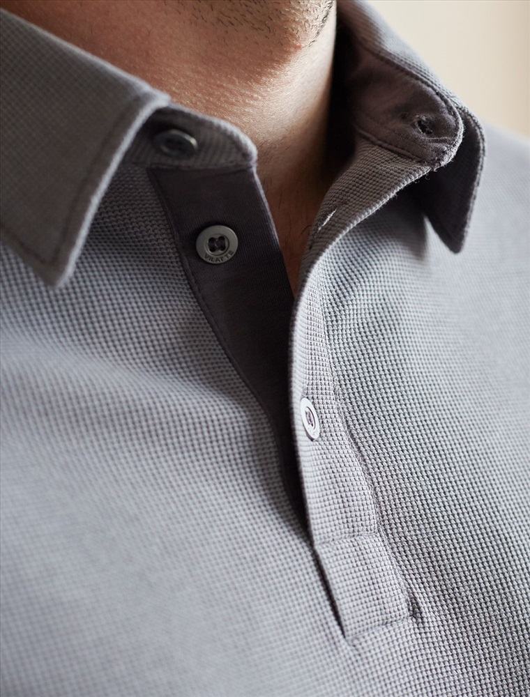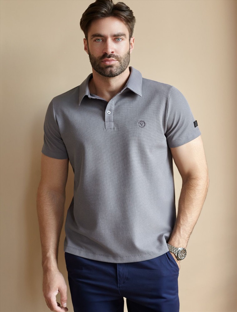 Футболка-поло выполнена из фактурного трикотажа. Однотонная модель с контрастной планкой и металлическими пуговицами с логотипом бренда. Эластичный хлопковый материал хорошо пропускает воздух и комфортно облегает фигуру. В таком изделии не будет жарко даже в самое теплое время года.