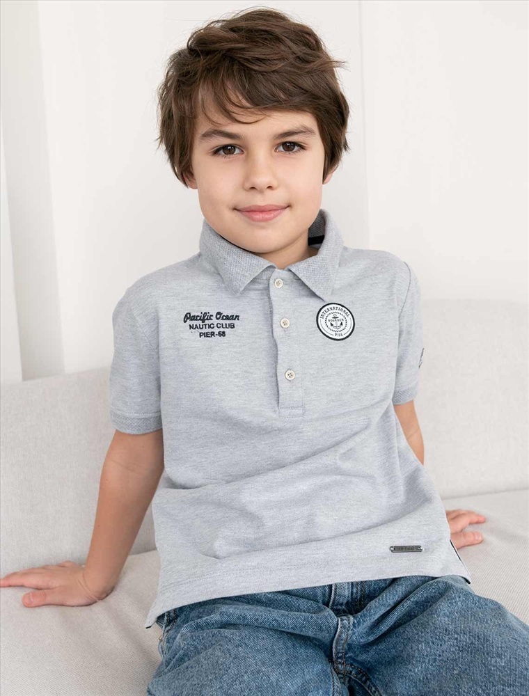 Футболка-Поло для мальчиков в оттенке серый меланж с классической горловиной на пуговицах выполнени из мягкого хлопкового трикотажа пике. Приятный на ощупь материал из отборных волокон, хорошо пропускает воздух, поэтому в модели будет комфортно в течение всего дня. Воротник и манжеты связаны из хлопковых нитей. Наличие эластана в составе изделия способствует эластичности и меньшей сминаемости. Спереди – вышивка в морской тематике, внизу металлический логотип бренда.