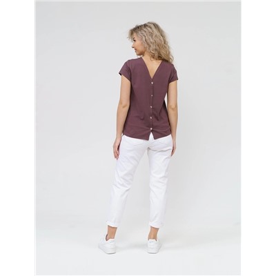 Цвет: коричневый Футболка с оригинальным кроем, спинка выполнена на запах с фальшивой застежкой на пуговицы. Изделие представлено в нескольких базовых цветах.