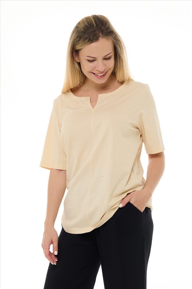 Состав: 100% хб Рост модели на фото, см: 170 Силуэт: прямой Вырез горловины: круглый Тип рукава: втачной Артикул: 8271-14
