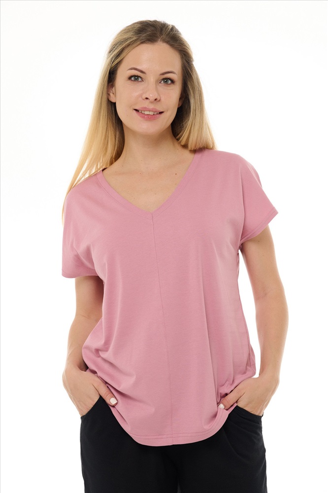 Состав: 100% хб Рост модели на фото, см: 170 Силуэт: полуприлегающий Вырез горловины: v-образный Тип рукава: спущенное плечо Артикул: 8381-14