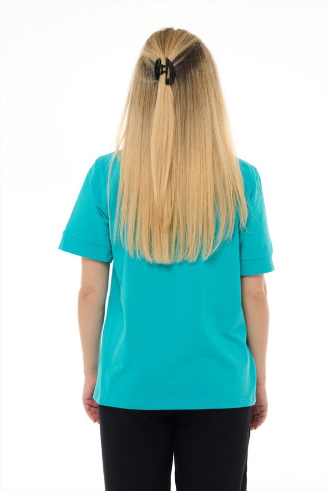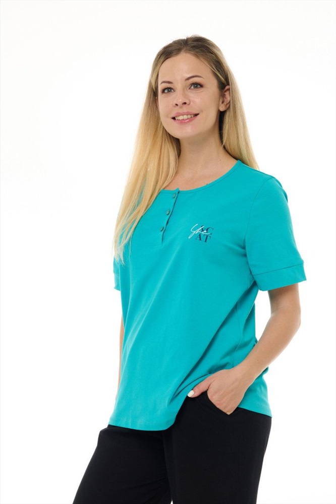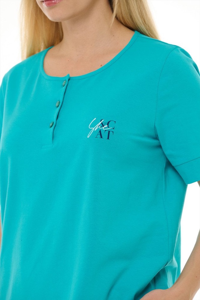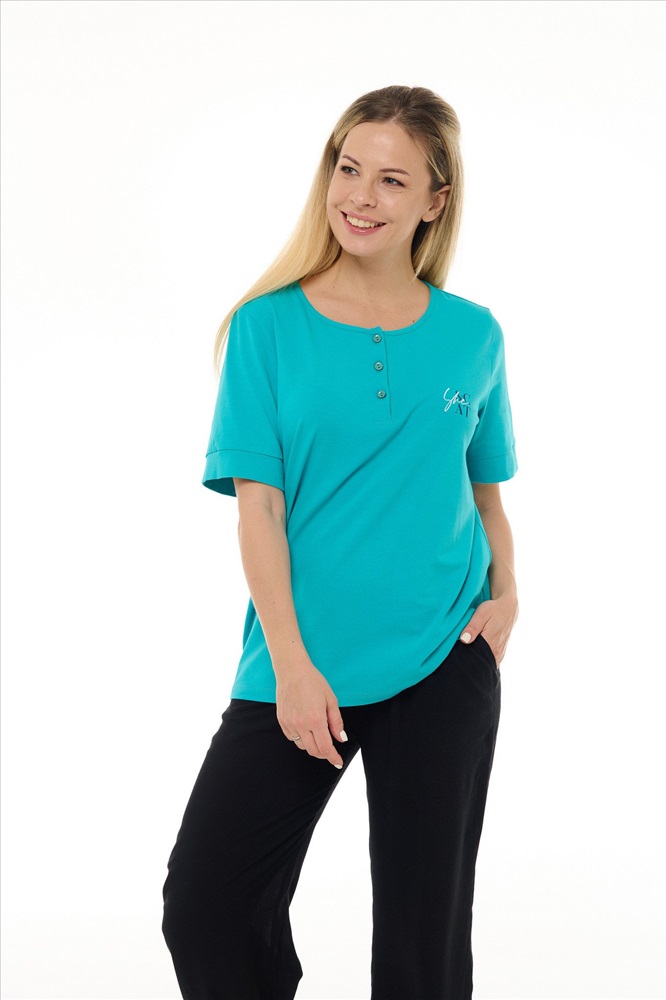 Состав: 100% хб Рост модели на фото, см: 170 Застежка: пуговицы Силуэт: прямой Вырез горловины: круглый Тип рукава: втачной Артикул: 8392-21
