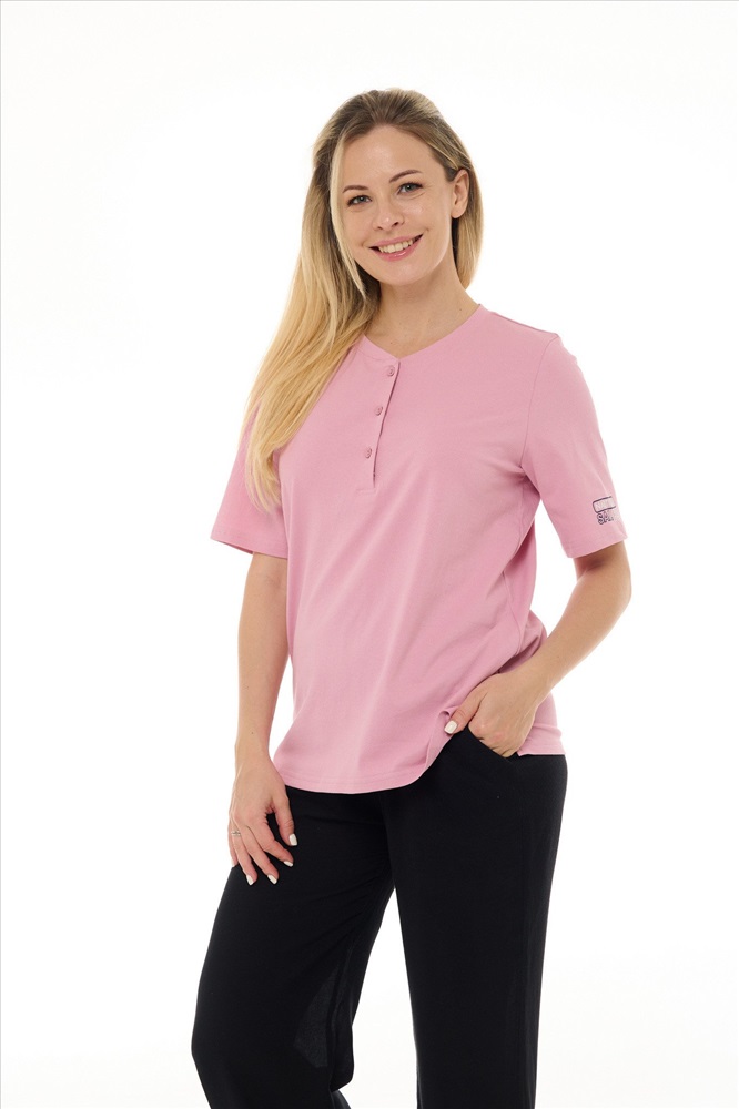 Состав: 92-хб 8-пэ Рост модели на фото, см: 170 Застежка: пуговицы Силуэт: прямой Конструктивные элементы: разрезы по бокам Вырез горловины: круглый Тип рукава: втачной Артикул: 8423-08