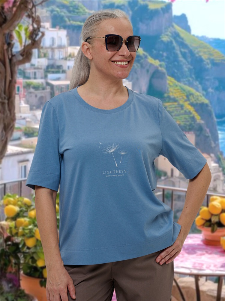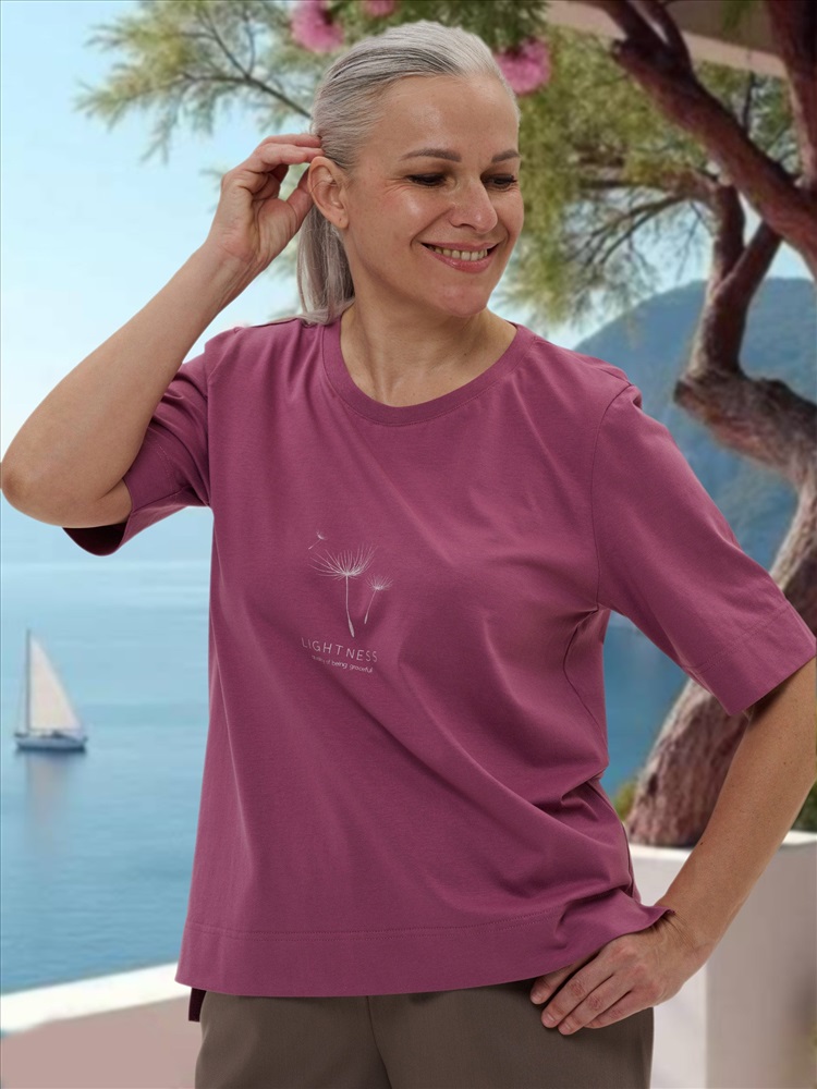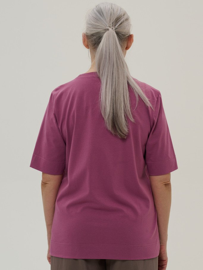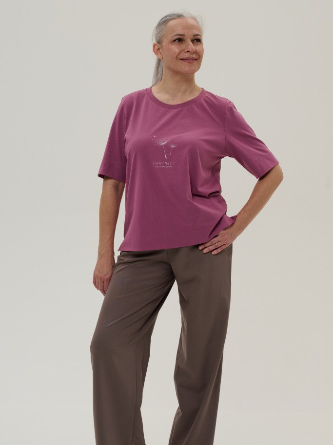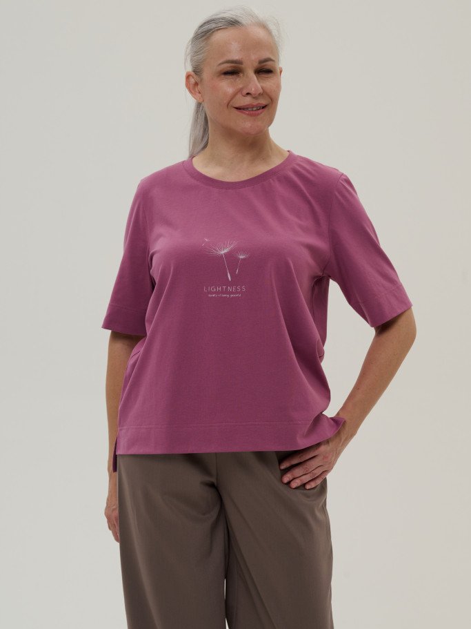 Состав: 100% хб Рост модели на фото, см: 170 Силуэт: прямой Конструктивные элементы: перед короче спинки на 4 см Вырез горловины: круглый Тип рукава: втачной Артикул: 8606-14