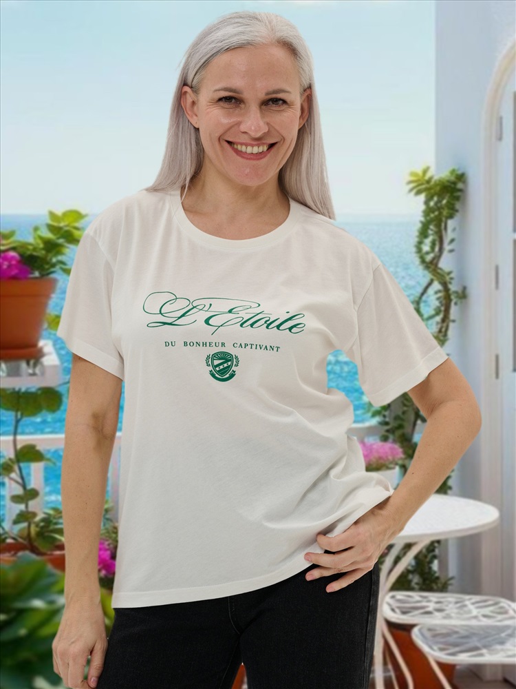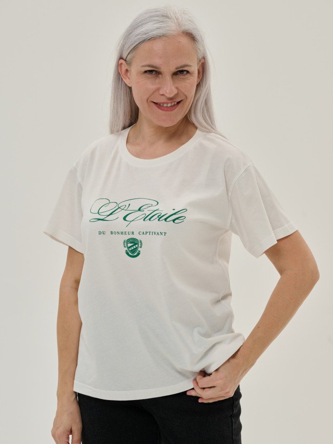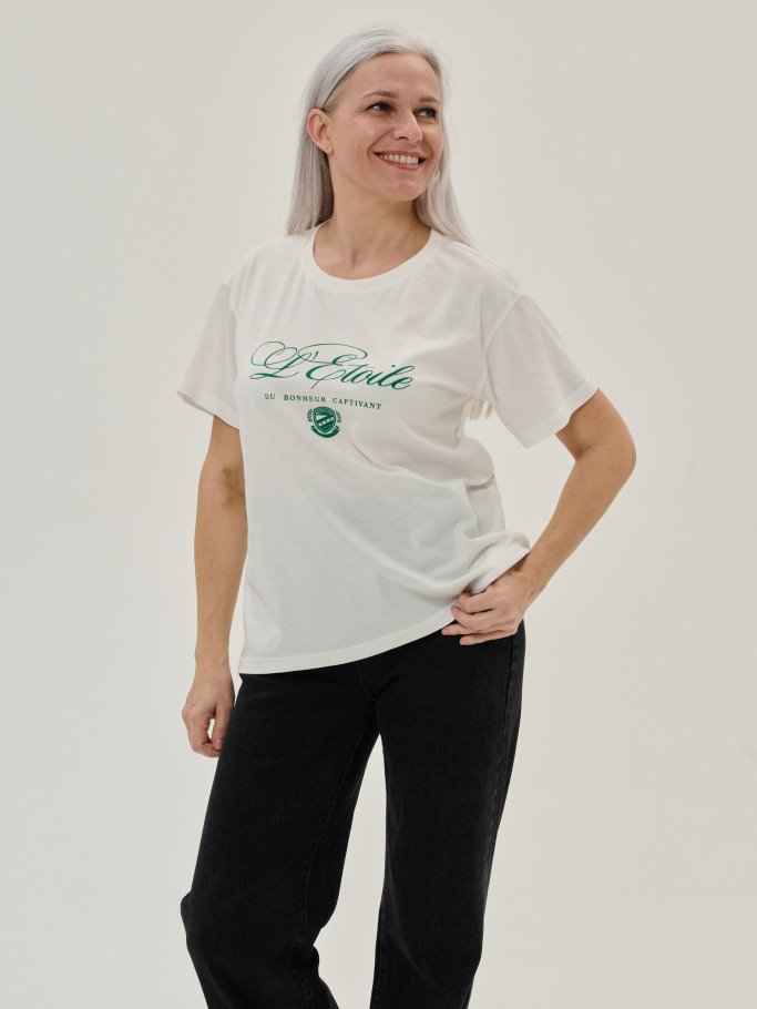 Состав: 100% хб Рост модели на фото, см: 170 Силуэт: свободный Вырез горловины: круглый Тип рукава: спущенное плечо Артикул: 8768-01