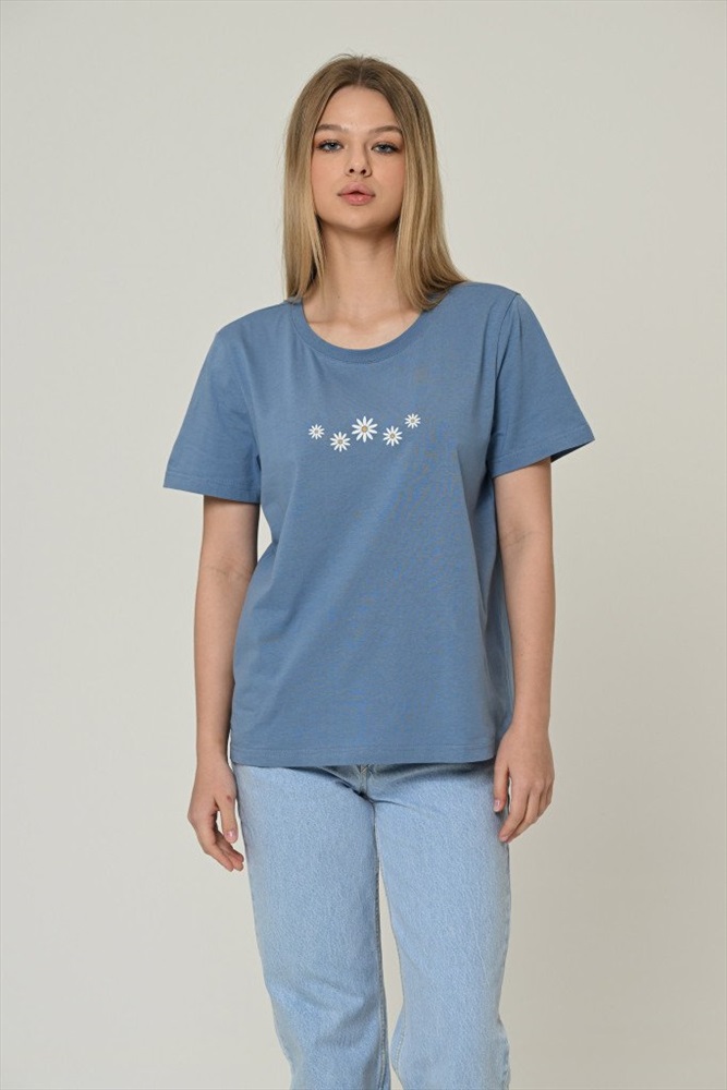 Состав: 100% хб Рост модели на фото, см: 170 Силуэт: прямой Вырез горловины: круглый Тип рукава: втачной Артикул: 8772-07