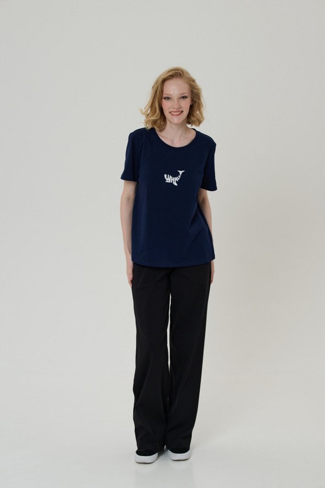 Состав: 100% хб Рост модели на фото, см: 175 Силуэт: прямой Вырез горловины: круглый Тип рукава: втачной Артикул: 8775-26