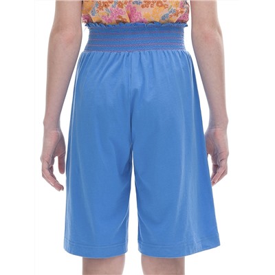 Шорты-бермуды из 100% хлопка для девочки. Натуральный состав ткани и свободный крой обеспечивают комфорт вашему ребёнку. Изделие приятное на ощупь и отлично подходит для жаркой погоды. Пояс модели украшает горизонтальная сборка контрастными нитками с деликатным рюшем вверху - актуальный летний тренд. Такие шорты будут носиться долго. Ребёнок растёт, и они словно "растут" вместе с ним. Однотонные яркие бермуды легко сочетать с топами и футболками различных силуэтов и расцветок.