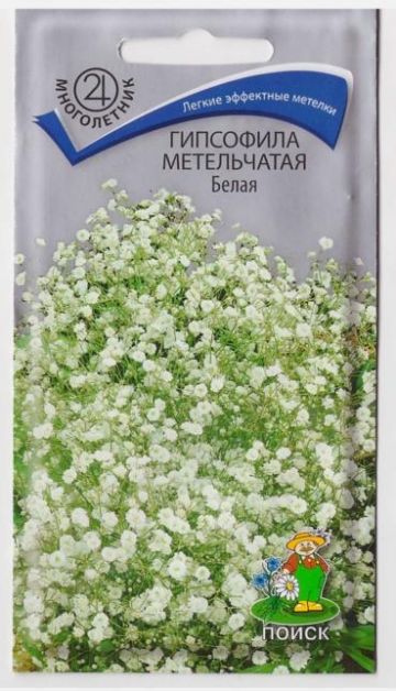 Лёгкие эффектные метёлки на тонких стебельках. Растение высотой 100-110 см. Листья узкие, серовато-зелёные. Цветки белые, мелкие, махровые образуют пышное облако. Цветение обильное и продолжительное (июль-август). Используют для бордюров, каменистых горок, а также для цветочных аранжировок летних и зимних букетов.Агротехника. Растение предпочитает сухие открытые солнечные места. Морозостойкое. Посев производят в мае в разводочные гряды. Семена слегка присыпают землей. При температуре почвы +15-18