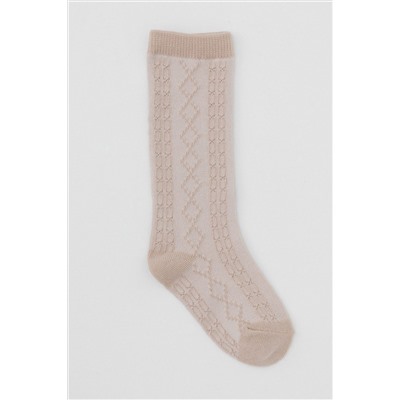 Гольфы для девочки, связаны ажурным геометрическим узором.