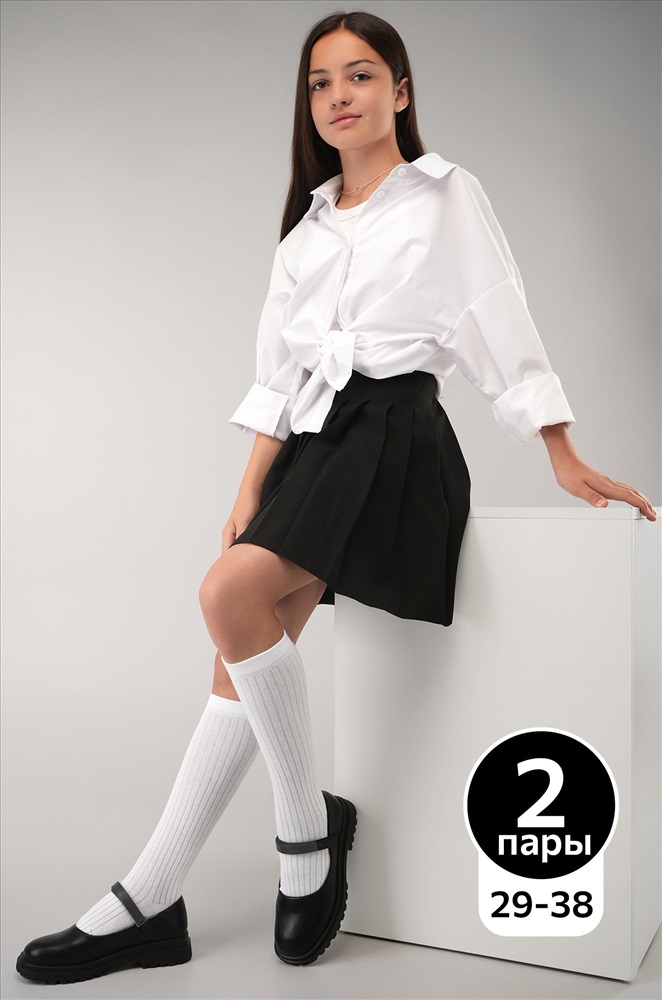 Белые гольфы для девочки – стильный и практичный выбор на каждый день.Набор из 2 пар выполнен в трендовой вязке лапша, которая добавляет текстуре выразительность и изысканный вид.