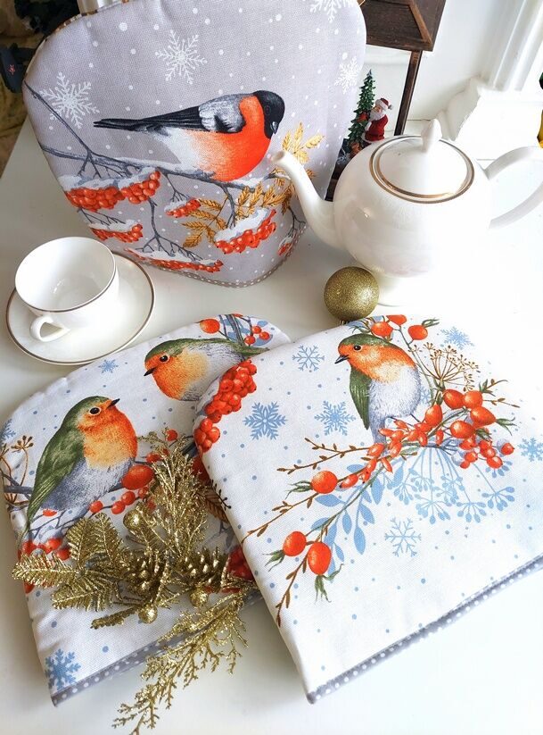 Грелка на чайник "Музыка зимы" рогожка хлопок 100%