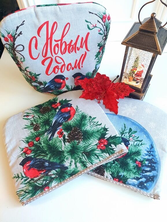 Название: Новогодние снегири Ткань: рогожка Состав: хлопок 100% Размер: ширина 32 см,высота 25 см. Комментарии к товару