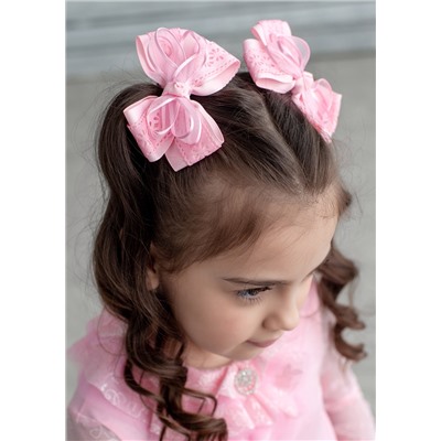 Очаровательная заколка-бантик для волос, на зажиме. Изготовлена из атласной и кружевной ленты. Длина 10 см. Продается упаковками по 6 шт. Комментарии к товару
