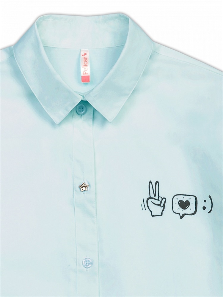 Школьная блузка для девочки с классическим отложным воротником - идеальный выбор для активных учениц. Блузка свободная прямого силуэта обеспечивает комфортную посадку и свободу движений. Увеличенный объем плечевого пояса, широкие рукава с манжетами и встречная складка из-под кокетки на спинке делают ее идеальной для самого активного ребенка. В составе ткани преобладает высококачественный хлопок - блузка детская отлично пропускает воздух, что позволяет коже дышать и предотвращает перегрев. Благодаря полиэстеру изделие меньше мнется и долго сохраняет форму, что делает ее прочной и долговечной. Для школьных блузок мы используем сорочечную ткань, плотностью 100 гр/м2. Школьная блузка декорирована забавными принтами в стиле эмоджи на школьную тематику, что придает ей особый шарм и отличает от обычных однотонных рубашек. Одна из пуговиц контрастного цвета также выполняет декоративную функцию, добавляя изюминку к образу. Голубая или белая блузка для девочки - прекрасный выбор для школьной формы. Для ухода рекомендуется стирать при температуре не выше 30 °С, без предварительного замачивания, с изнанки, и расправить перед сушкой. Это поможет сохранить качество и цвет на длительное время. Выберите нужный размер по таблице размеров на фото. Обратите внимание, что цвет товара на экране вашего устройства может отличаться от реального цвета изделия.