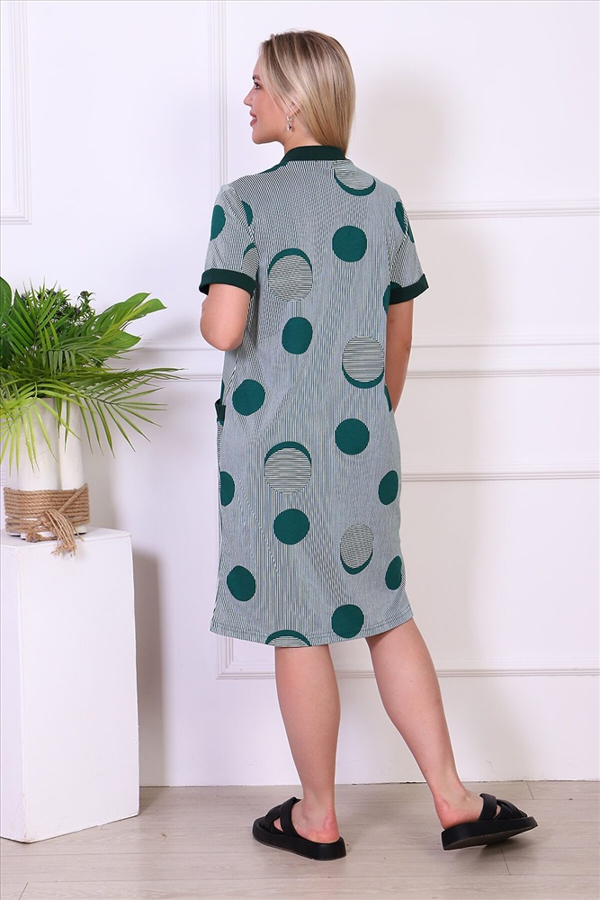 ID товара: 877442 Состав: 100% Хлопок Сезон: Демисезон Длина: прикрывает колено Фасон: Приталенный Рукав: Короткие Вид застежки: Молния Декоративные элементы: Карманы накладные Основная ткань: Хлопок | Кулирка Страна бренда: Россия Страна производства: Россия Халат женский приталенного силуэта, застежка - молния. Короткий рукав, карманы и горловина отделаны контрастным цветом. Комментарии к товару