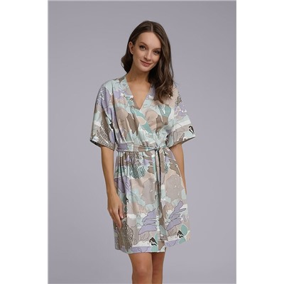 Халат для дома на запах с поясом из хлопкового трикотажного полотна. Короткий спущенный рукав.