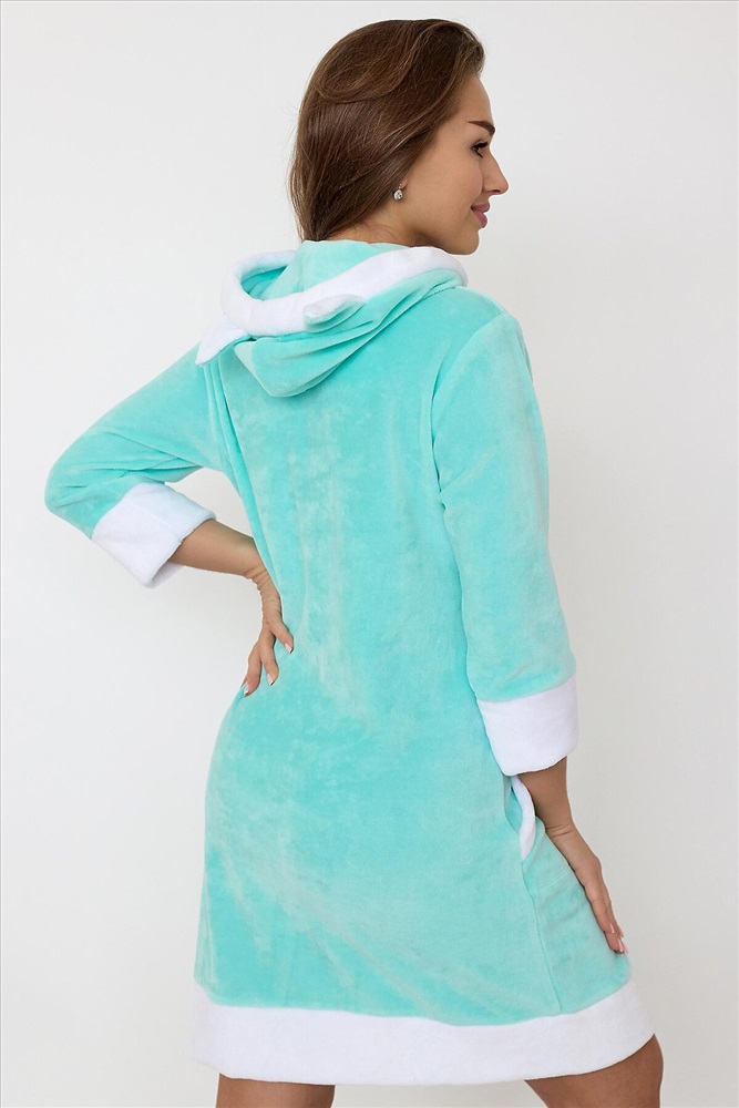 ID товара: 961426 Состав: Хлопок 80%, Полиэстер 20% Сезон: Демисезон Длина: До колена Фасон: Полуприлегающий Рукав: 3/4 Вид застежки: Молния Тип карманов: В боковом шве Декоративные элементы: С капюшоном Основная ткань: Велюр Плотность: Плотная Уход: Машинная стирка Страна бренда: Россия Страна производства: Россия Женский домашний халат с милым котиком на груди. Модель прямого кроя с застёжкой на молнию. Халат с капюшоном, который украшают забавные кошачьи ушки. В капюшон вставлен шнурок с помпонами на концах. Халатик выполнен из велюрового полотна с меховой отделкой на манжетах рукавов, капюшоне, карманах и по низу изделия. Длина изделия: По спинке: 40/42-83,44/46-84,48/50-86,52/54-90. Застежка: Молния. Комментарии к товару