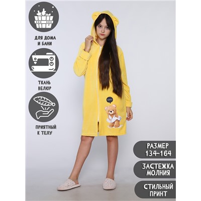 Оригинальный детский домашний халат из мягкого велюрового материала. Модель свободного кроя на молнии с крупным веселым принтом в нижней части, с удобным капюшоном , прорезными карманами по бокам. Халатик выполнен из комфортного велюра с хлопком ярких расцветок, практичного и приятного материала для домашнего использования. Материал заботится о том, чтобы вам было приятно выходить из ванной или душа, а ткань халата очень быстро высыхает. Халат отлично подойдет в качестве домашней одежды, а также как вариант для бассейна, после душа, бани. Согреет в прохладные вечера. Не линяет, не дает усадки и не требует глажки, сохраняет исходный внешний вид очень длительное время. Благодаря высокому качеству ткани, легкости в уходе и безупречному пошиву детский халат станет великолепным подарком для Вашего ребенка. Подарок внучке, дочке, племяннице, крестнице на День Рождения, на Новый год.